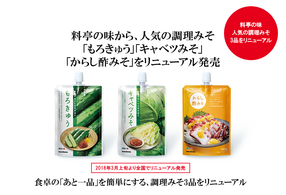 料亭の味「もろきゅう」「キャベツみそ」「からし酢みそ」ニュースリリースマルコメ。