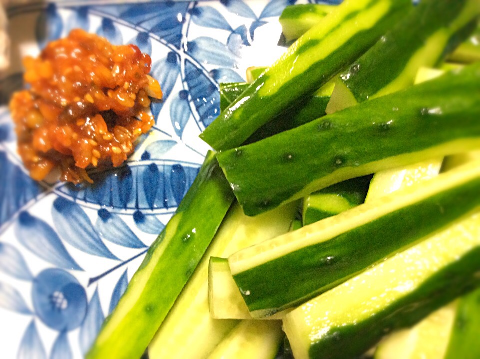 もろきゅう 味噌とオリーブオイルで - ヒマラヤ岩塩 料理レシピ集。