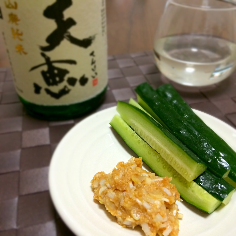 もろきゅう-キュウリの螺旋剥き~自家製青唐辛子味噌で自宅居酒屋 勇士。