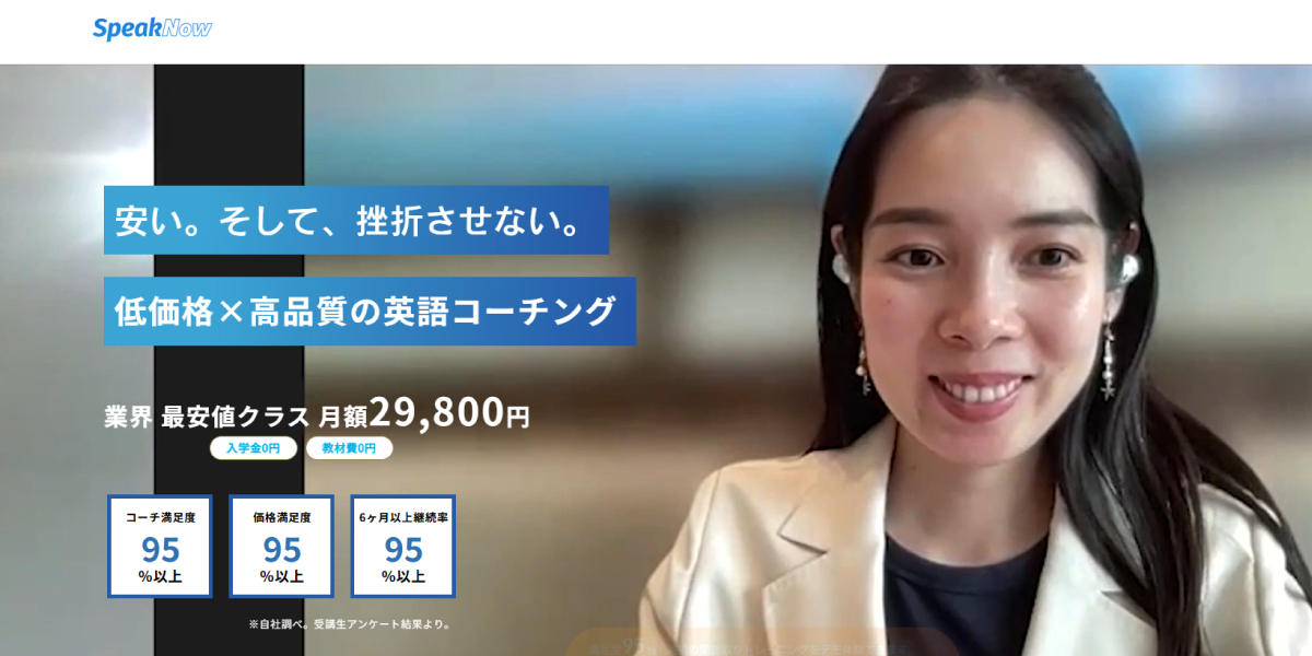 SpeakNow 安い英語コーチング 業界最安級の月額29,800円オンライン受講。