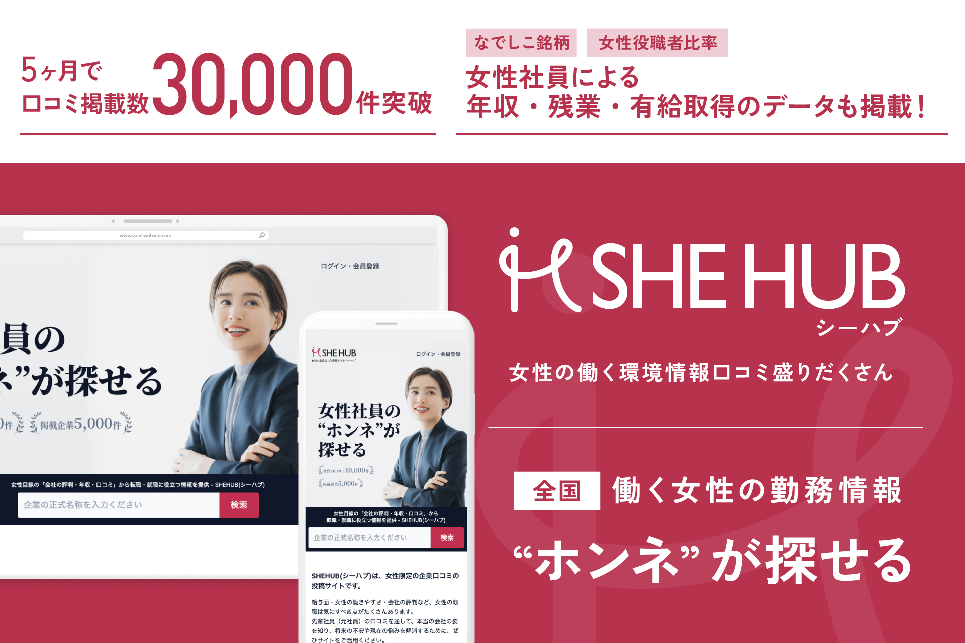 社会で活躍する女性を増やす 女性向け口コミ転職サイト『SHEHUBシーハブ』口コミ3万件を突破!ドットアイのプレスリリース共同通信PRワイヤ。