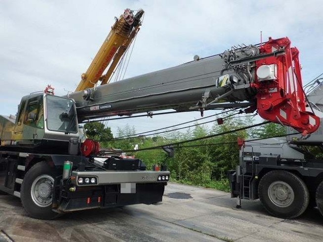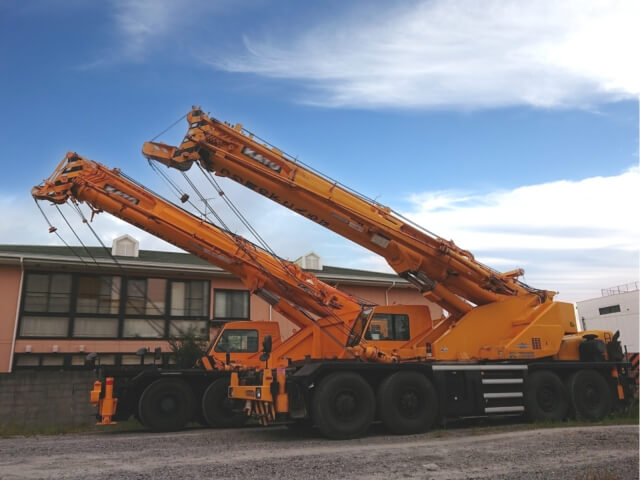 絶妙なサイズ感!60t〜100tラフタークレーンを知っていますか? ┃ ラフテレーンクレーン オールテレーンクレーン の作業・手配は丸良興業にお任せください。