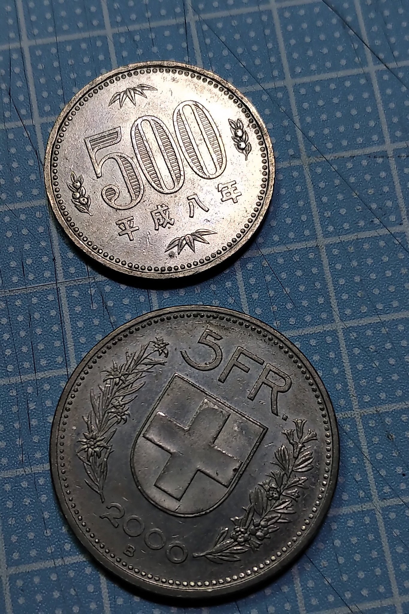 神崎中尉 on X: "5スイスフラン。580円相当。 硬貨としてはかなり高額。500円玉より価値の高いものです が、車を片付けたら出てきましたwこれ以上価値の大きな硬貨ってあるのかしら?記念硬貨などは除いて。 https:t.co Or1jRShNkq"X。