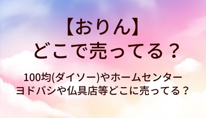 セリアでおりんは買える?100均のダイソーやホームセンターなどどこで売ってるか調査!100均ショップ.jp。