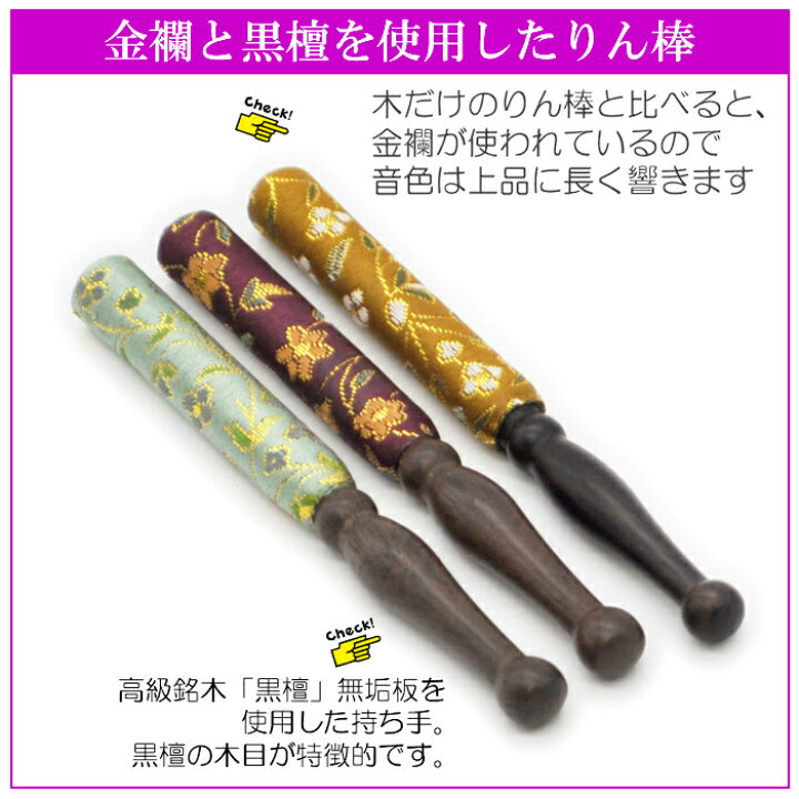 りん棒 日和柄 5寸長さ15cm おりん 国産 5.0寸 5号 仏壇用おりん お鈴 りん棒 仏具 送料無料。