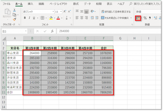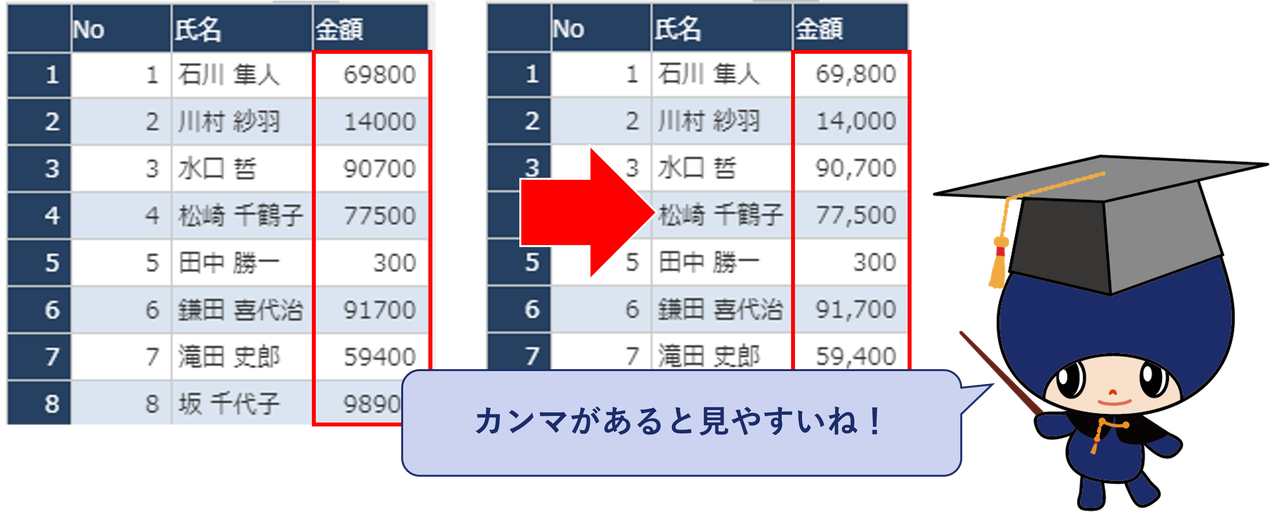Excel 数字に桁区切りのカンマを入れたいメディアックパソコンスクール。