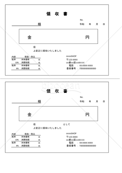 領収書の金額改ざん防止策―大字ビジネスフォーマット 雛形 のテンプレートBANK。