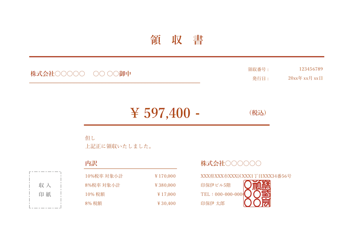 領収書テンプレートで無料デザイン作成 - デザインAC。