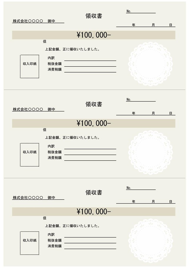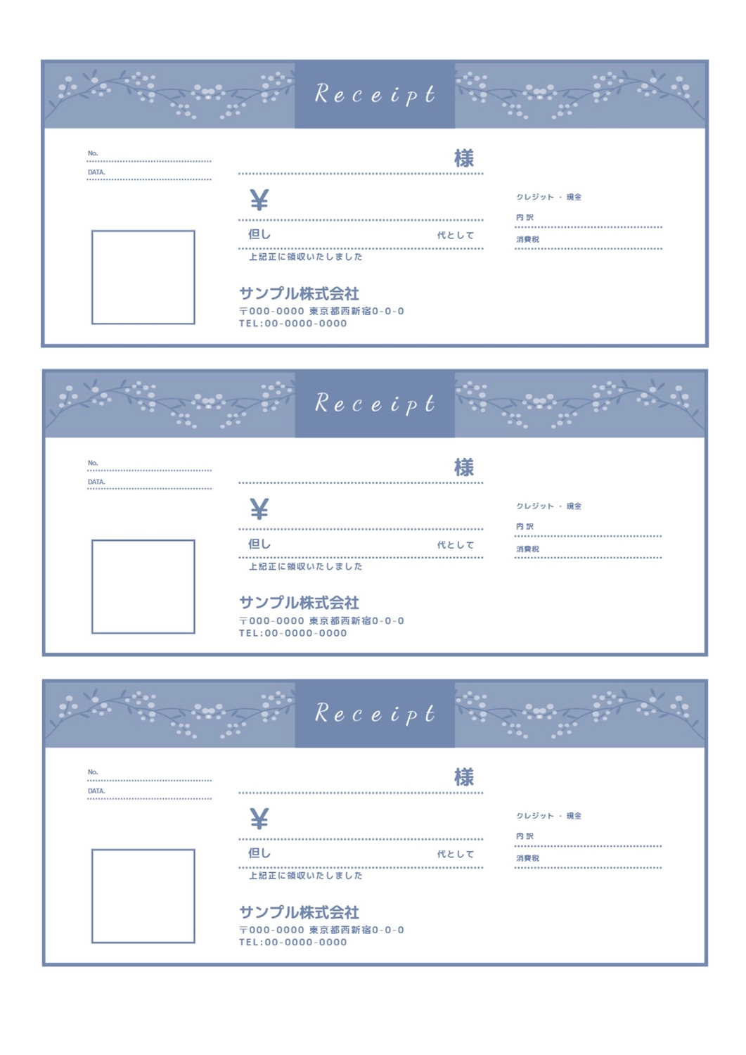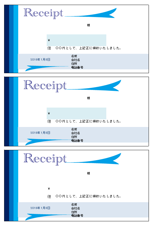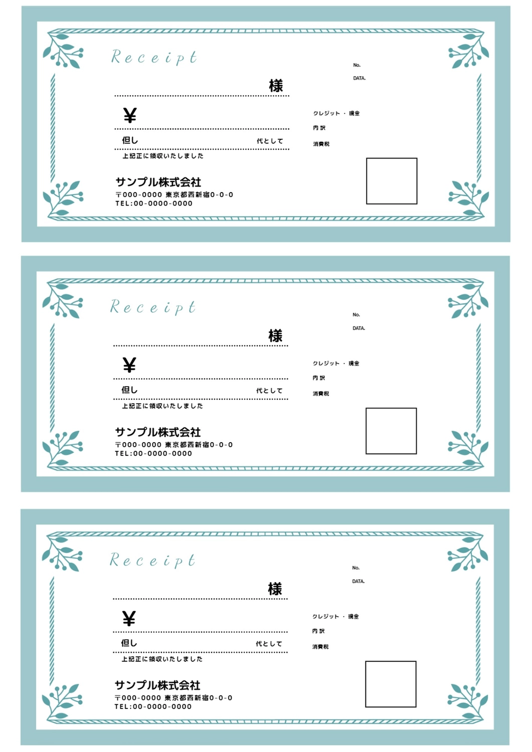 領収書テンプレート10「オシャレなA4用紙3枚印刷用」 エクセル・Excel 無料ダウンロードテンプレートNAVI。