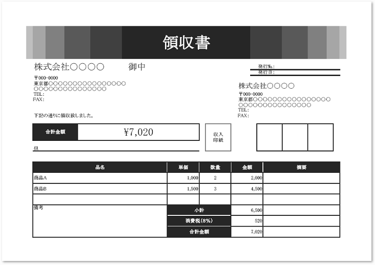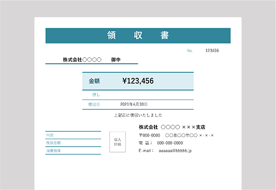 文書 テンプレートの無料ダウンロード: 領収書 Excel版A4サイズ内訳明細欄ありデザイン性あり。