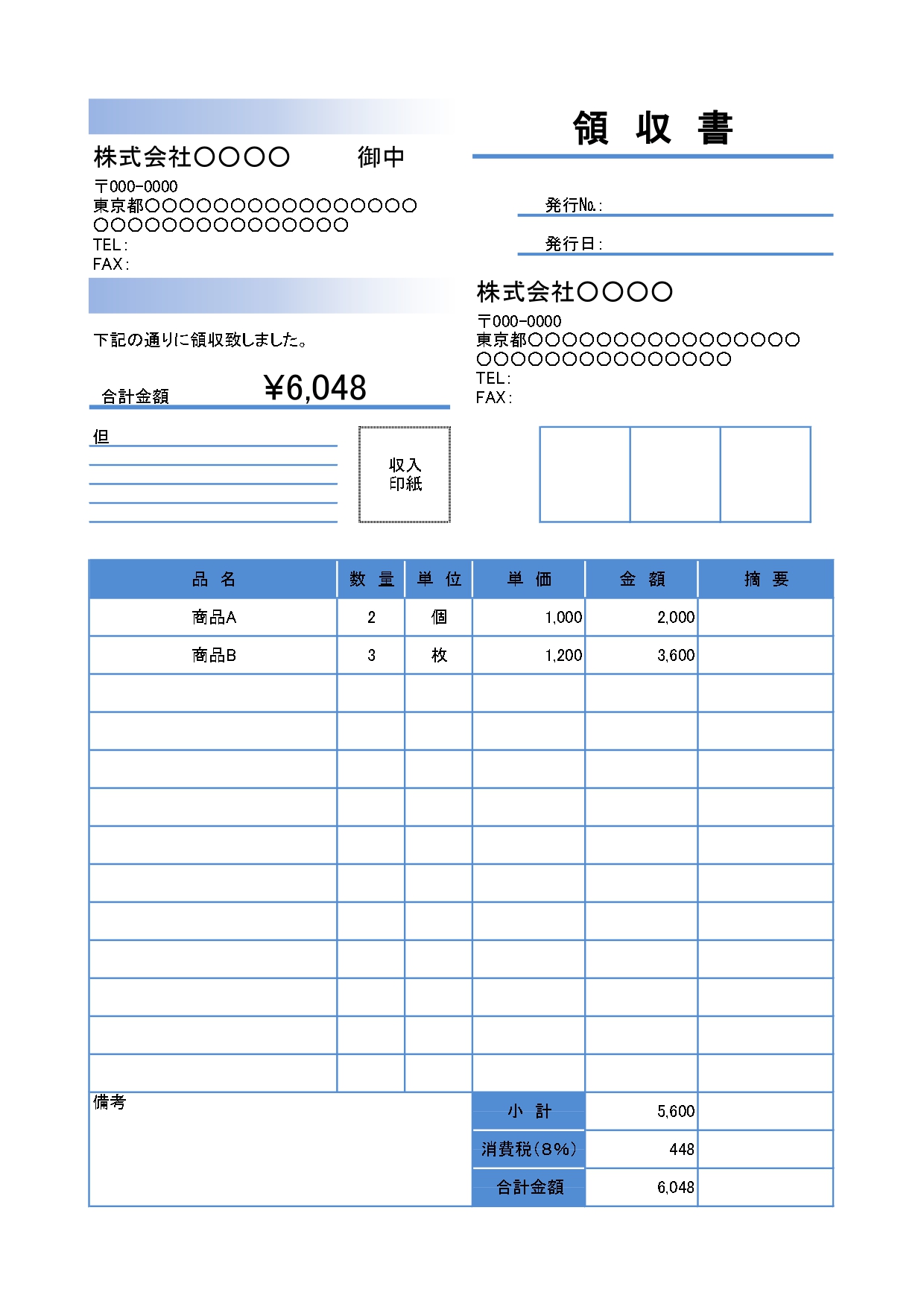 領収書エクセルテンプレート・サンプル 無料 ・作成・書き方。