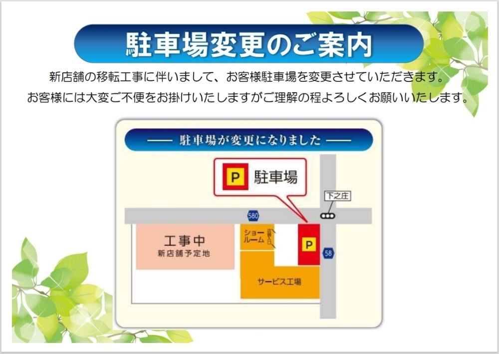 来客用駐車場の移動のお知らせ – 池田薬品工業株式会社。