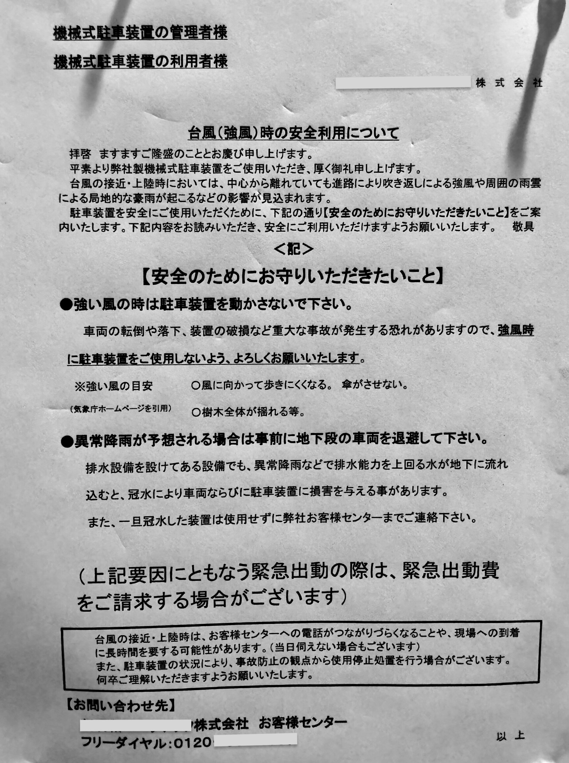 機械式駐車場下段は大雨のときに要注意! 車の移動を!マクロビオティックの落とし穴 マクロ美風のブログ。