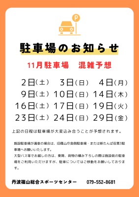 11月 駐車場混雑予想丹波篠山市立丹波篠山総合スポーツセンターミズノ。