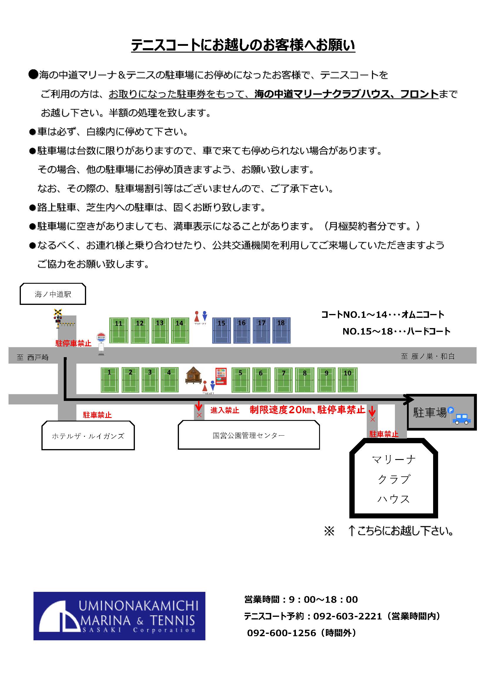駐車場利用につきましてのお願いです。 - 海の中道マリーナ&テニス。