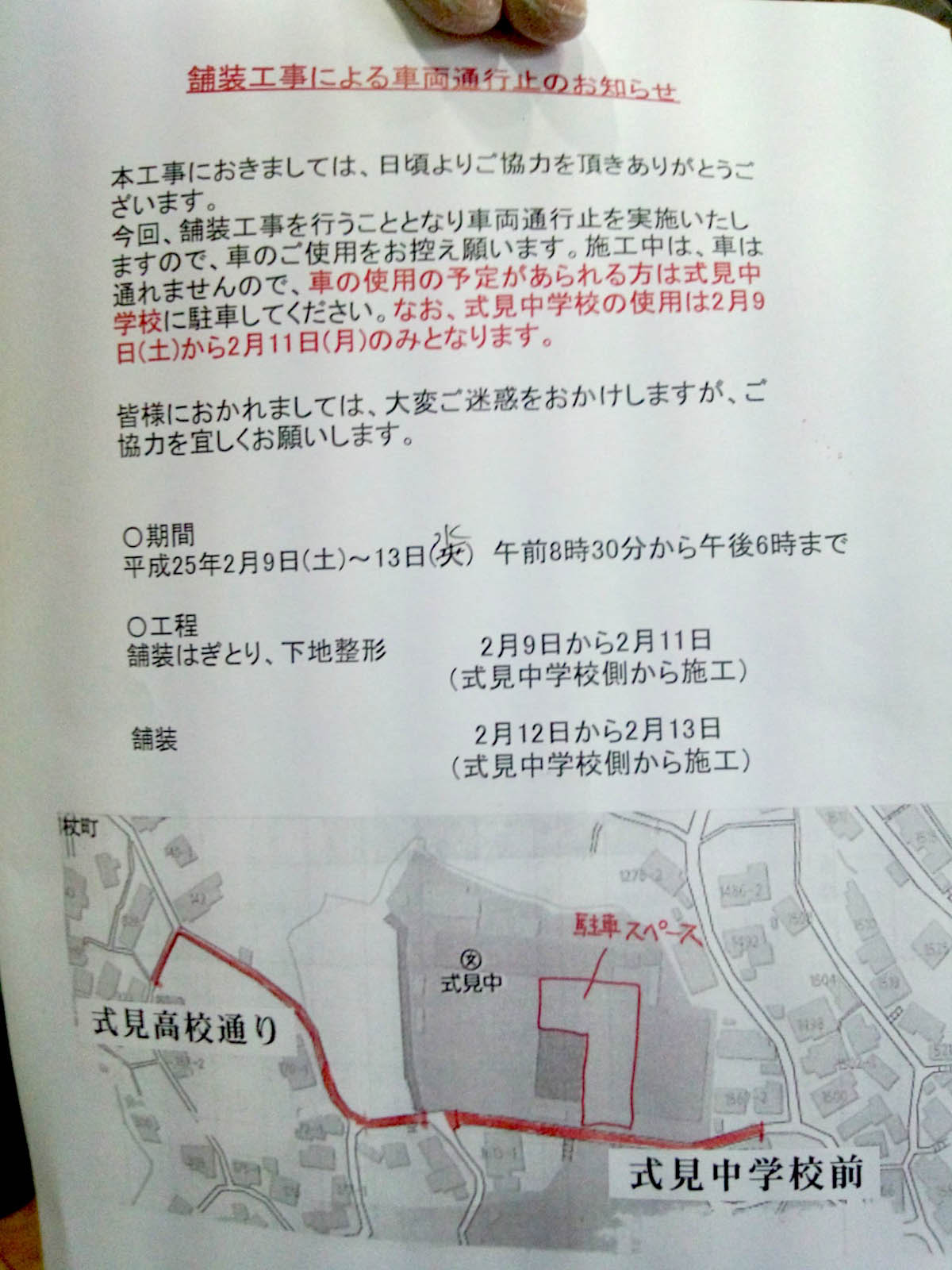 式見高校付近の道路舗装工事について長崎県フリークライミング協会。