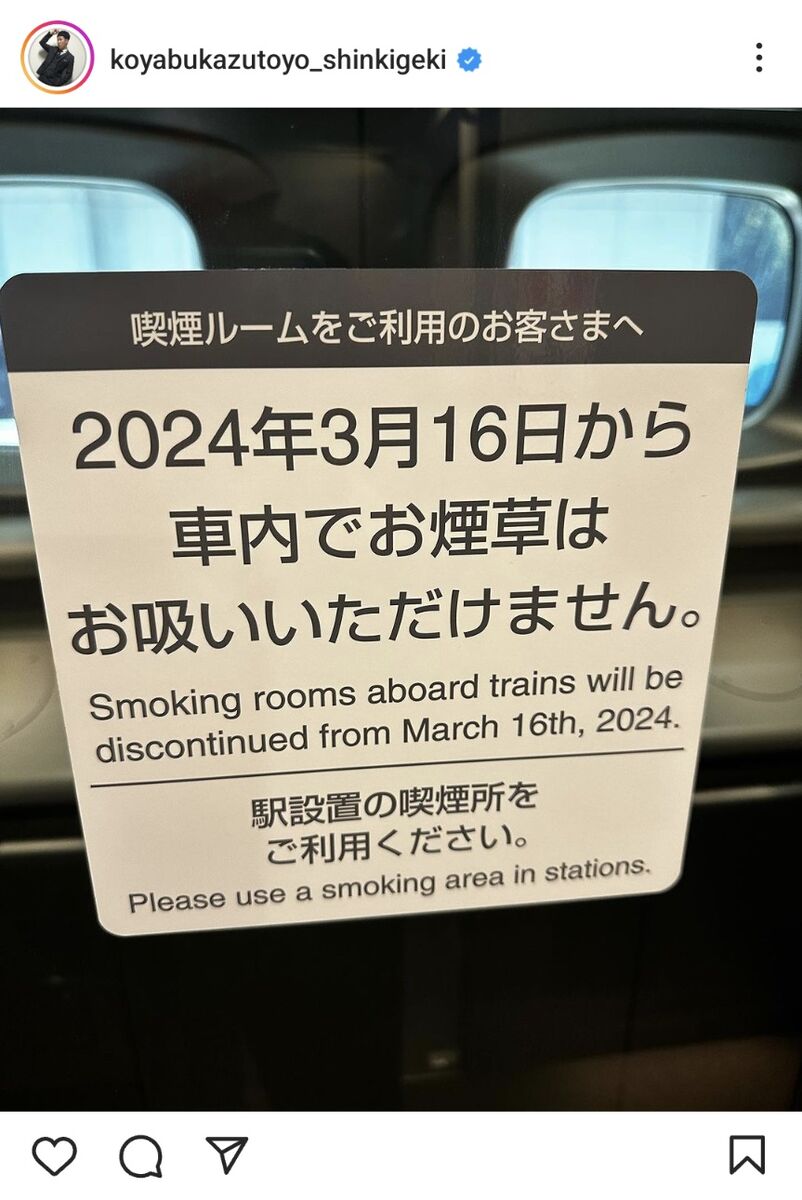 新幹線の喫煙ルーム廃止 都内から大阪移動の愛煙芸人、喫煙所へ駆け込み「完全に決まったよ」 - スポーツ報知。