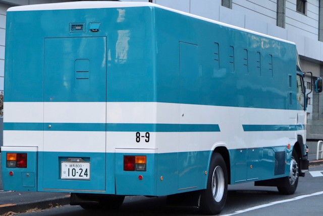 MF10L33 on X: "長崎県警 機動隊 常駐警備車 威圧感たっぷりでカッコいい車両です😊 ベース車は三菱スーパーグレートのようです😄 車内は運転席上部に時計があるのがバスみたいですが、後部は左右にベンチシート、最後部に仮眠用らしきベッドがあり質実剛健な造りでした。