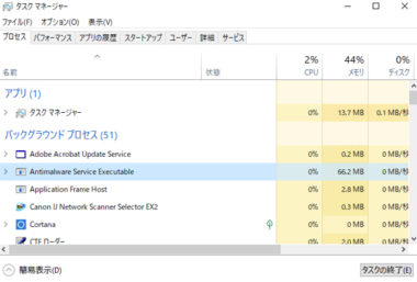 メモリ ディスクを使用する重いAntimalware Service Executableの対処法 停止も。