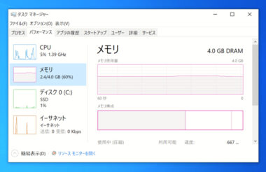 パソコンで「メモリ」や「CPU」の使用状況を確認する方法法人向けパソコン PC ・計測器レンタルなら横河レンタ・リース。