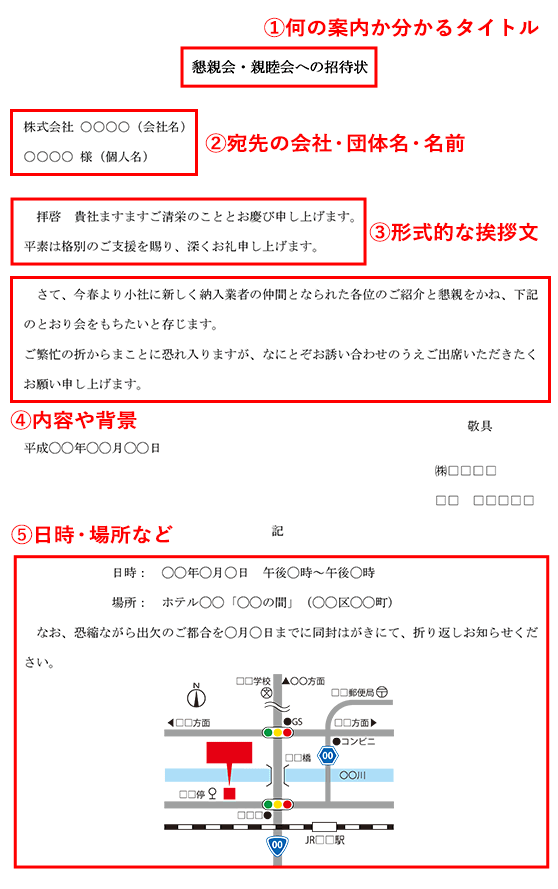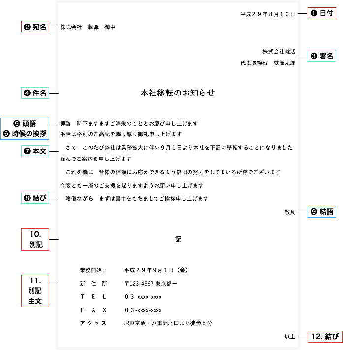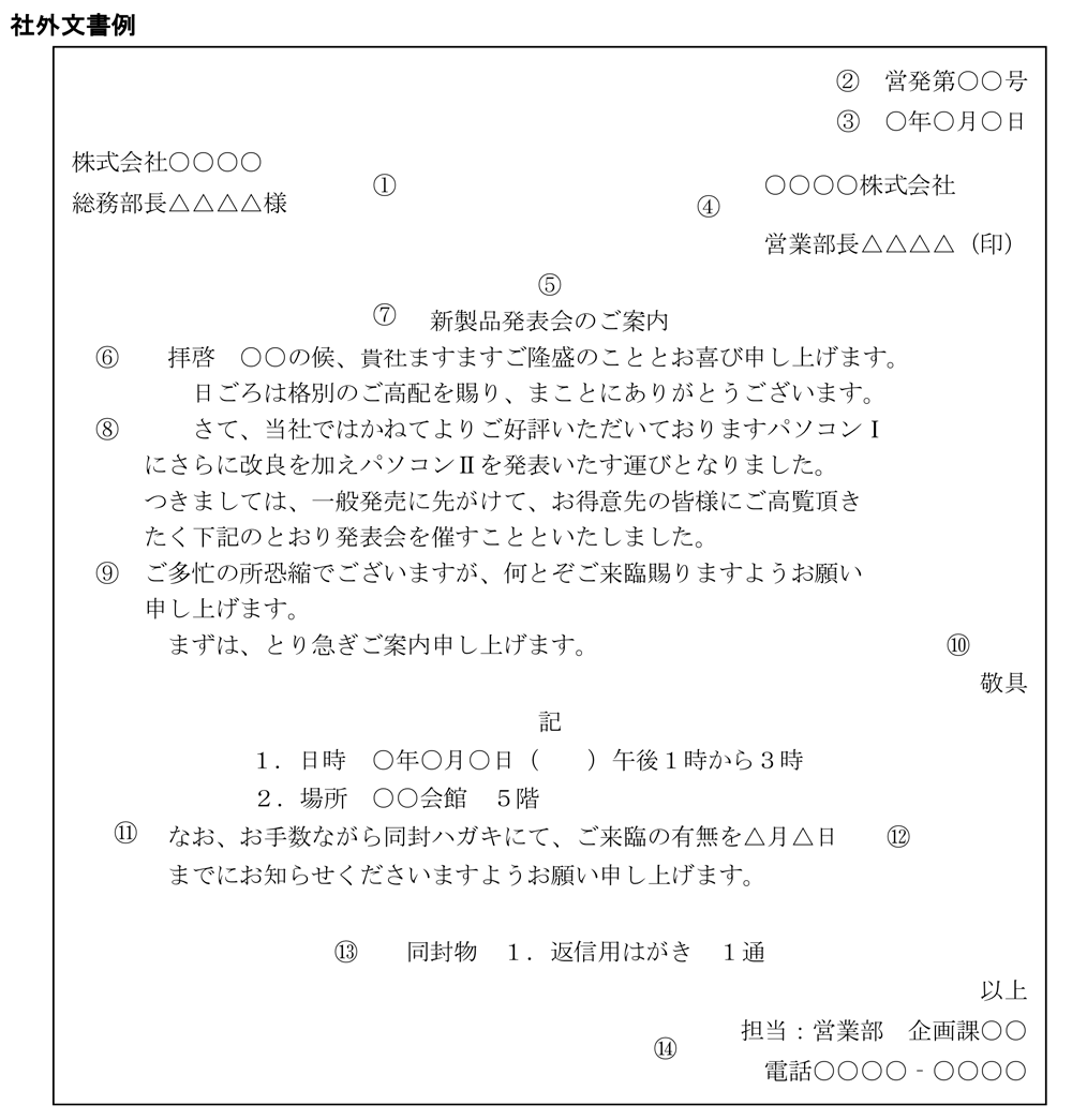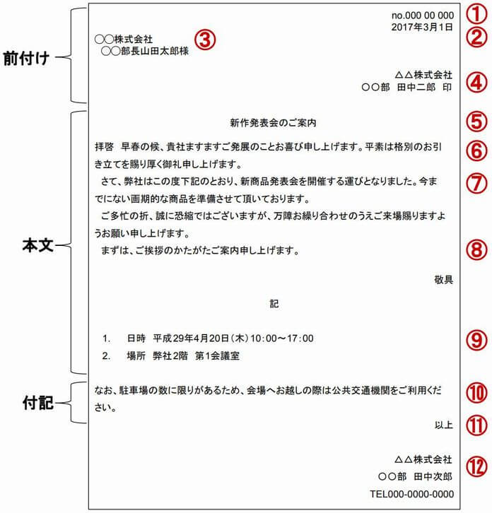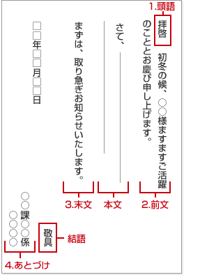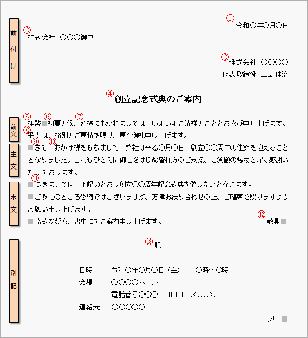 お知らせ文書 ビジネス文書、案内状、招待状等 の基本構成手紙の書き方大事典。