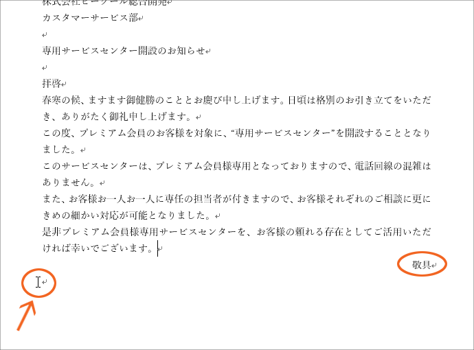 拝啓」と「敬具」、「記」と「以上」では、改行マークに注目! Word・ワード。
