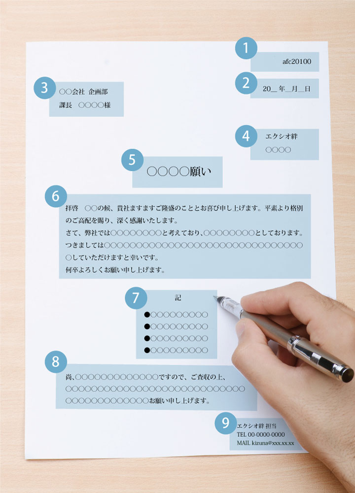 ビジネス文書の基本フォーマット手紙&スピーチ代筆「エクシオ 絆」。