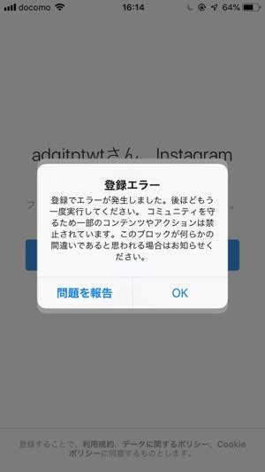 Instagram 「登録できませんでした」エラーで新しいアカウントを作れない問題の対策 2018年6月24日現在増加中。