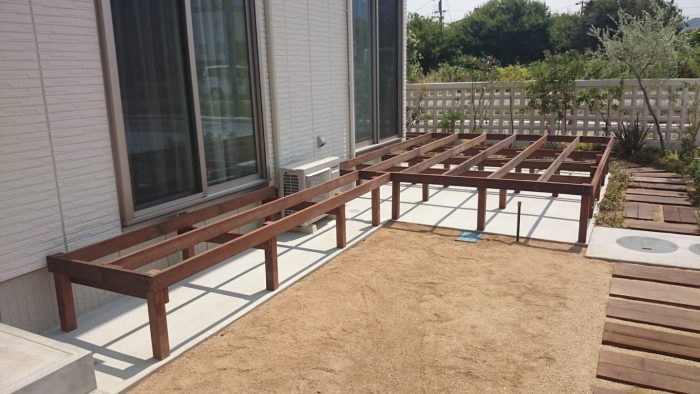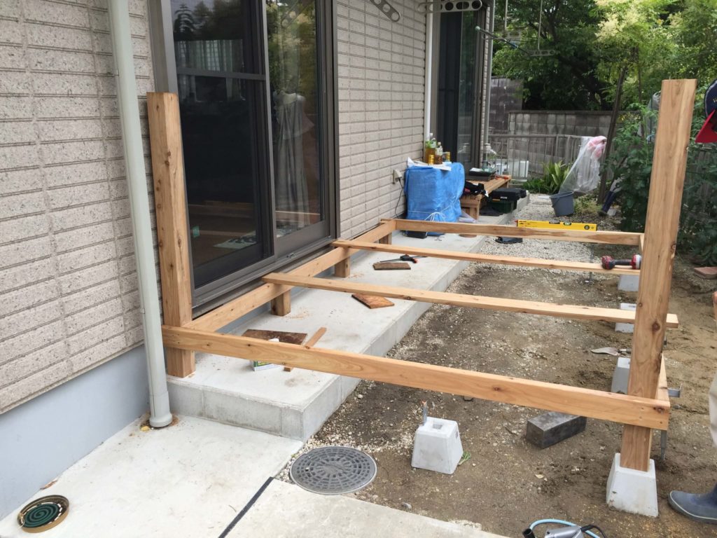 ウッドデッキをDIY! ウッドデッキの構造を組む。