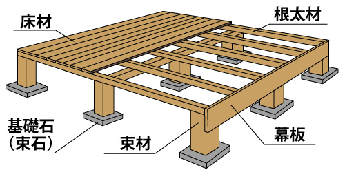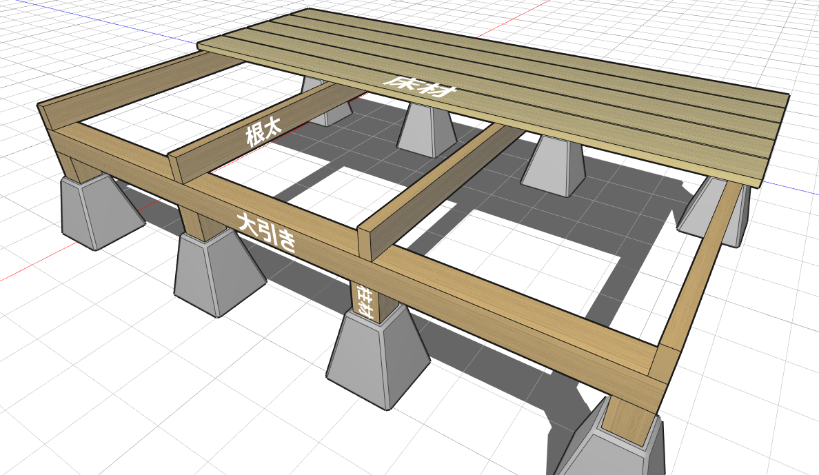 ウッドデッキのおすすめサイズ 床板・根太・大引ブログウッドデッキ材の販売ならウッドデッキ通販のDecks デックス。
