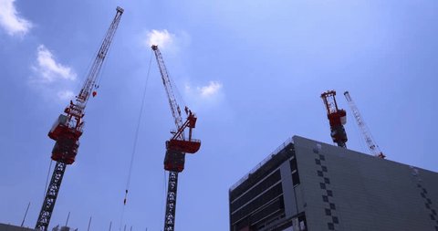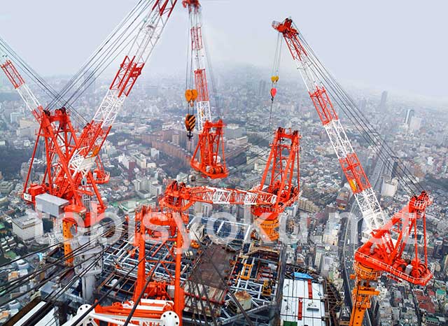 タワークレーン 超高層ビル建設現場Tower crane at the construction site of ULTRA high risebuilding。