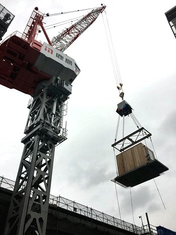ユニット化した部屋をタワークレーンで組み上げる。鹿島が開発したスゴい独自工法の全容ニュースイッチ by 日刊工業新聞社。