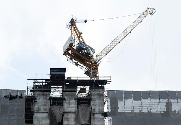 屋上ビル建設現場のタワー建設用クレーンPremium写真。