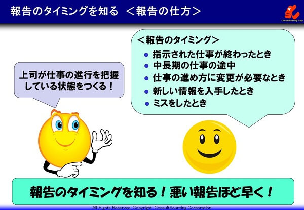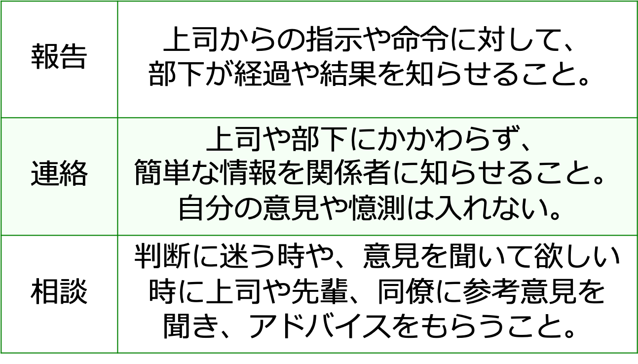 報連相のススメ 報告・連絡・相談の違いの分かりやすい解説。