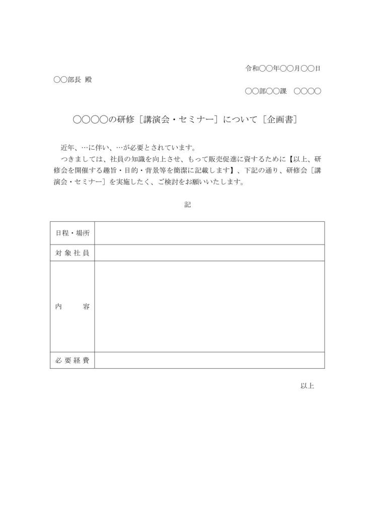研修会実施の企画書のテンプレート無料ビジネステンプレートのダウンロードなら ボクシルSaaS。
