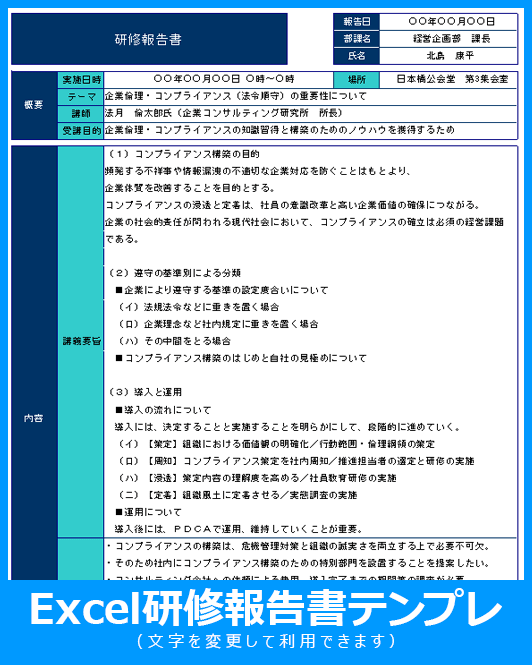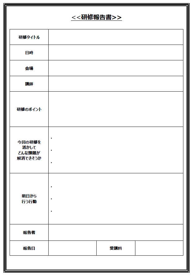 テンプレート 研修報告書書き方とポイント 無料ダウンロード。