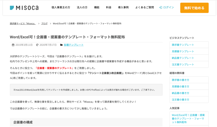 無料 Word Excelの企画書テンプレート9選!書き方や例文も紹介。