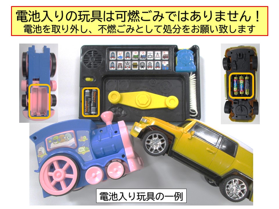 適正処分のお願い 電池入り玩具は可燃ごみではありません広域保健衛生組合小山市公式ホームページ。