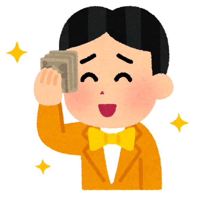 お金を見つめてニヤけている男性のイラストかわいいフリー素材集 いらすとや。