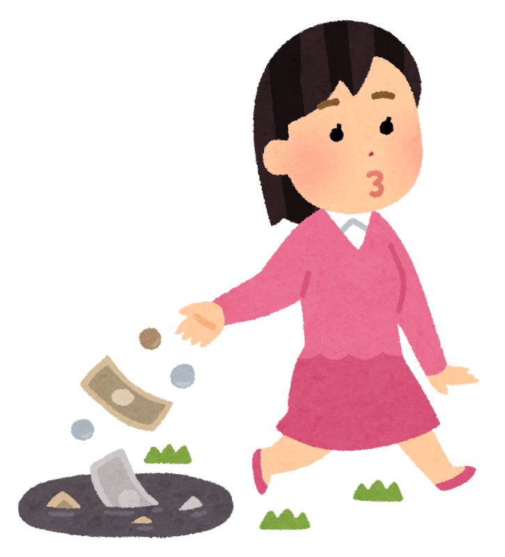 お金をドブに捨てる人のイラスト 女性かわいいフリー素材集 いらすとや。