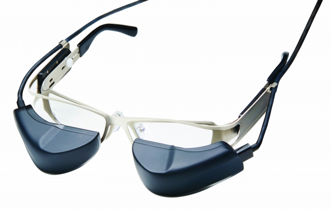 メガネ型ウェアラブル端末「b.g. ビージー 」最新の商品プロトタイプを発表株式会社メガネスーパーのプレスリリース。