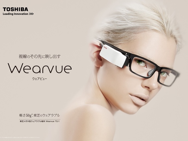 東芝、視界を遮らないメガネ型ウェアラブル端末「Wearvue TG-1」 - AV Watch。