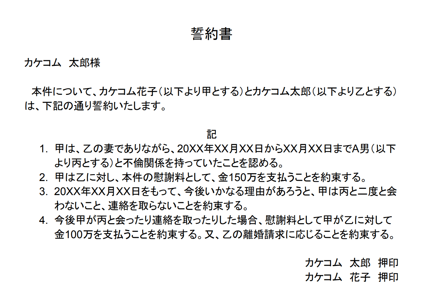 テンプレ有 浮気・不倫の誓約書に防止効果はある? - カケコムメディア。