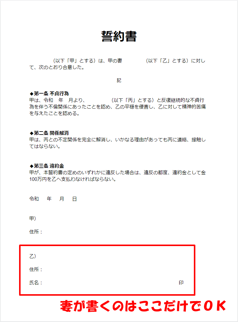 簡単 浮気した旦那 妻 用の誓約書の書き方 テンプレート付き- こぶき行政書士事務所。