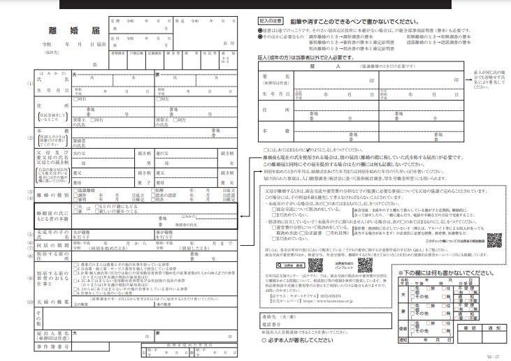 離婚届の書き方・記入例見本!必要書類や間違いの訂正の仕方ウォーク。