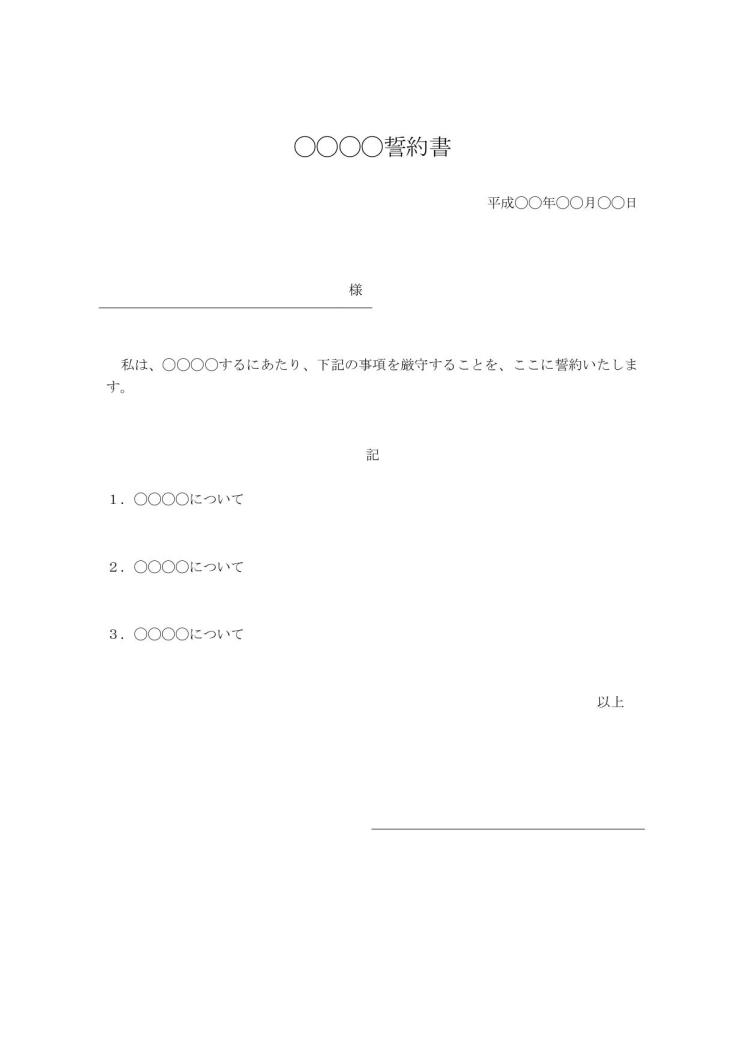 誓約書の書き方・例文・文例 書式・様式・フォーマット 雛形 ひな形テンプレート 基本手紙形式ワードWord 02 DOCX形式宛名等が罫線形式-文書 テンプレートの無料ダウンロード。