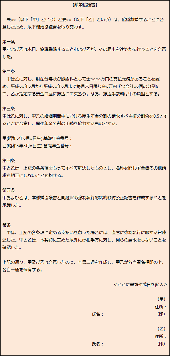 離婚協議書を自分で作成!例文サンプルで簡単にわかる書き方や内容 テンプレート 雛型 付き。