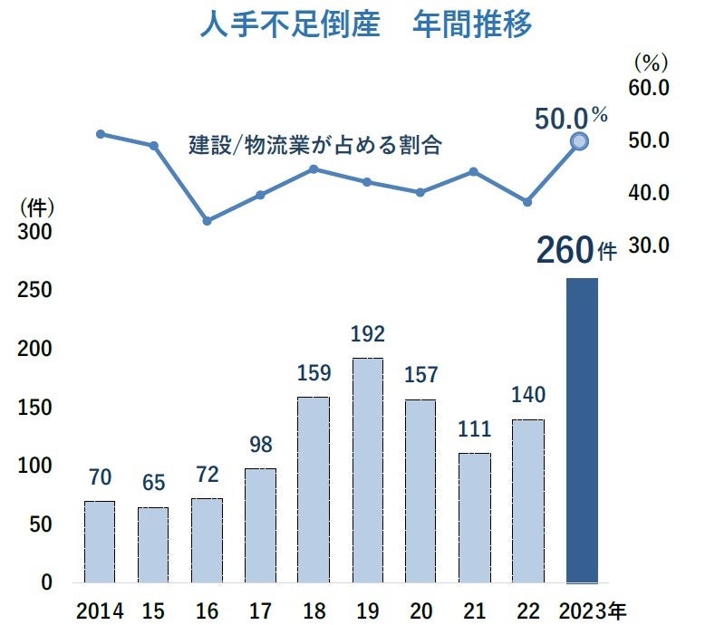 2023年の人手不足倒産、過去最多の260件株式会社帝国データバンクのプレスリリース。