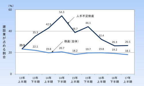建設業の「人手不足倒産」が高水準 - 日本経済新聞。