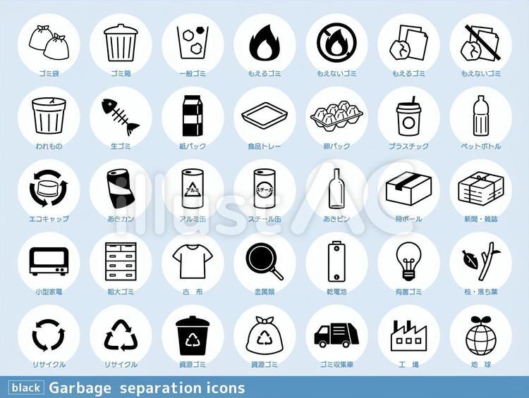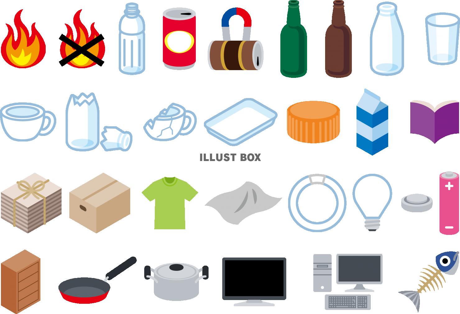 ゴミ分別・リサイクル マーク・アイコンセット:イラスト無料。